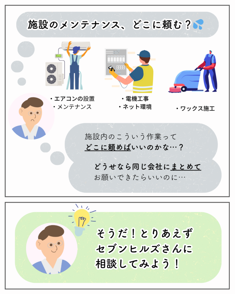 📣施設内メンテナンスの手配は、まとめてセブンヒルズにおまかせ!